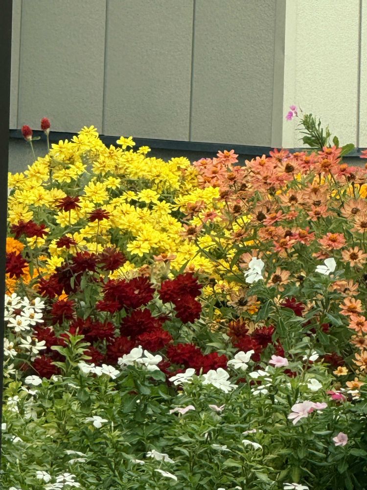 散歩途中 色とりどりのジニアが咲いているお家を発見🏠