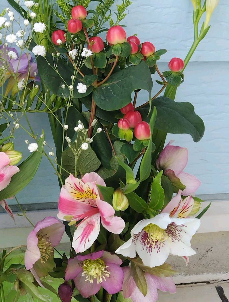 あななさんの玄関アプローチ,アルストロメリア,カスミソウの投稿画像