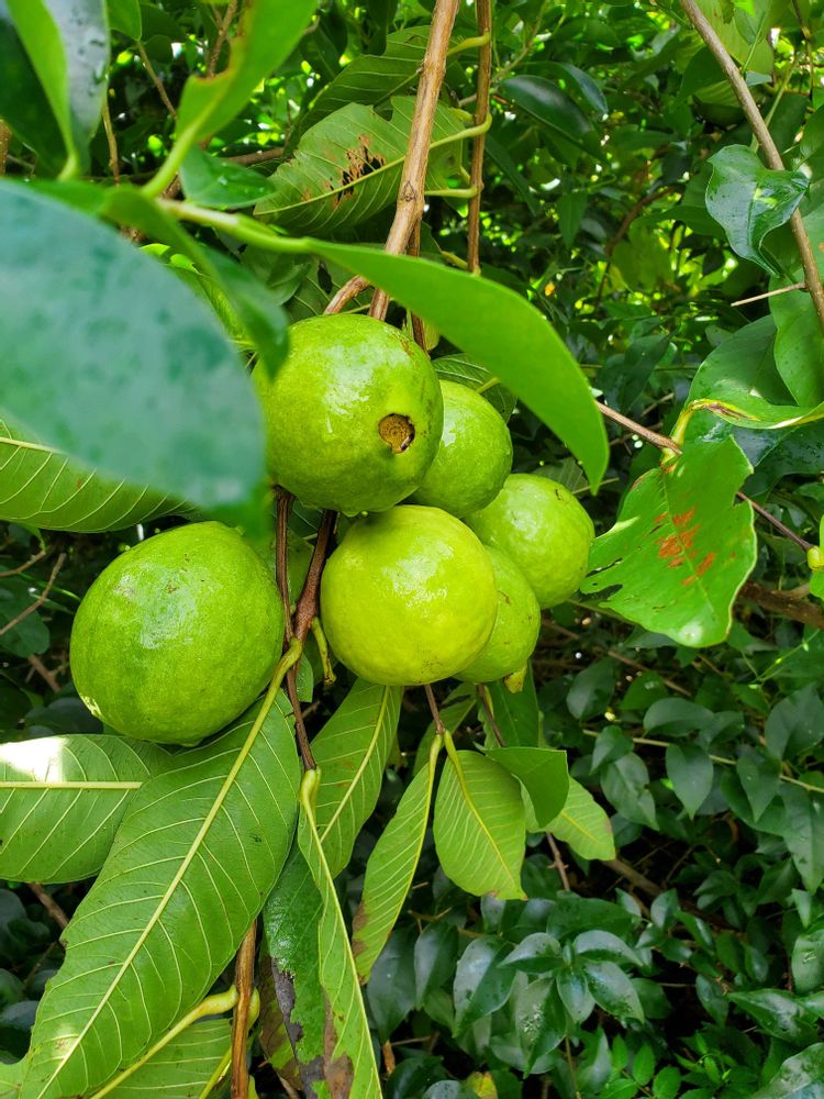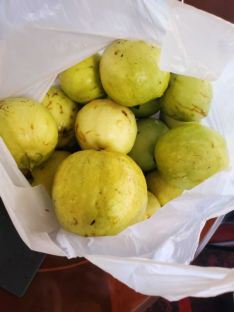 待ちに待ったグァバの収穫。無肥料(無農薬)なので、小さめと思いきや大きく育ちました。