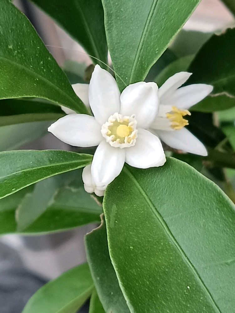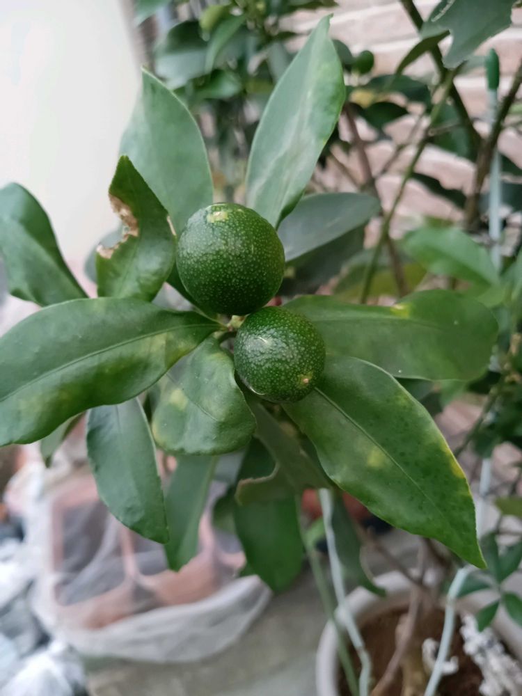 金柑の実とお花、今年の夏の猛暑のせいか実付が悪いです✨️💛💚💛💚💛🍊