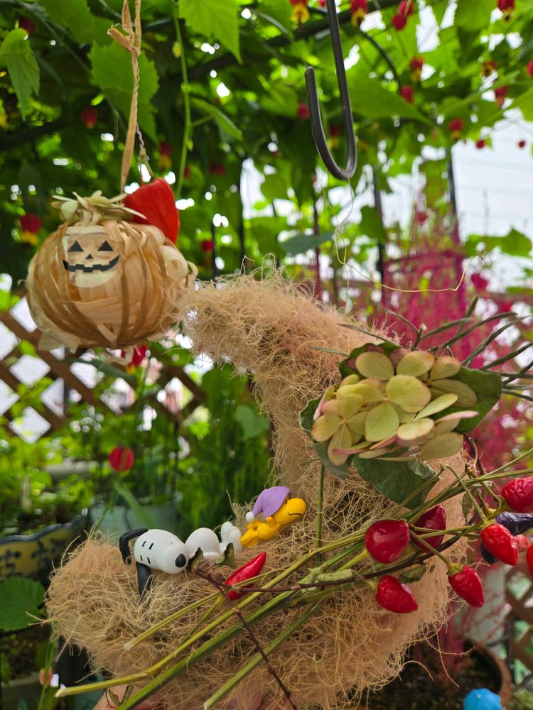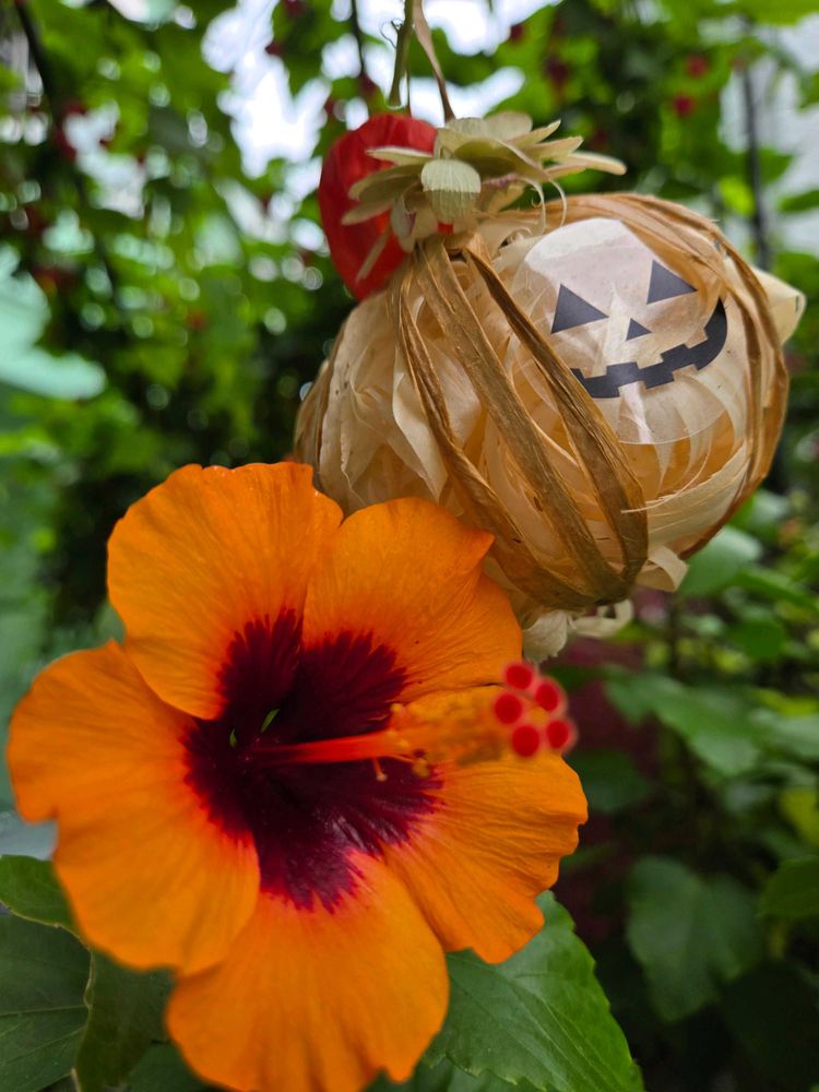 ハイビスカス🌺と🎃カンナちゃんどっちの顔が大きい〰️🤣って比べてる〜🤭
