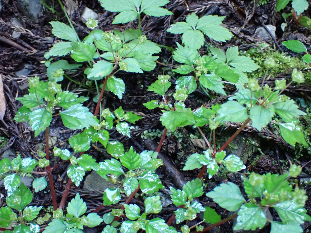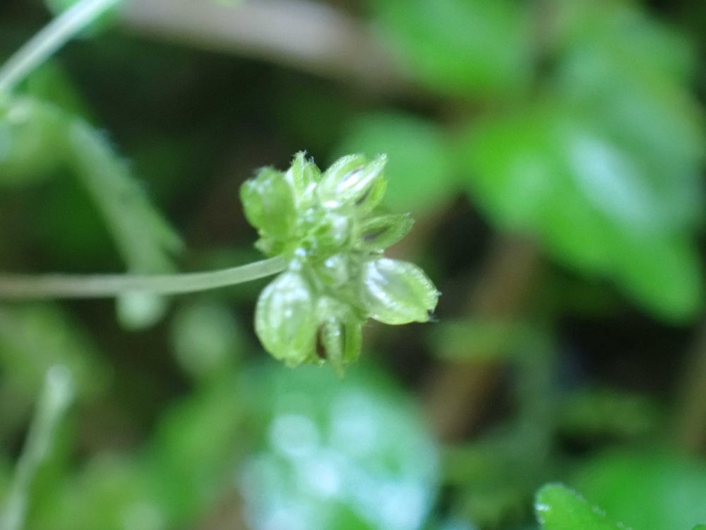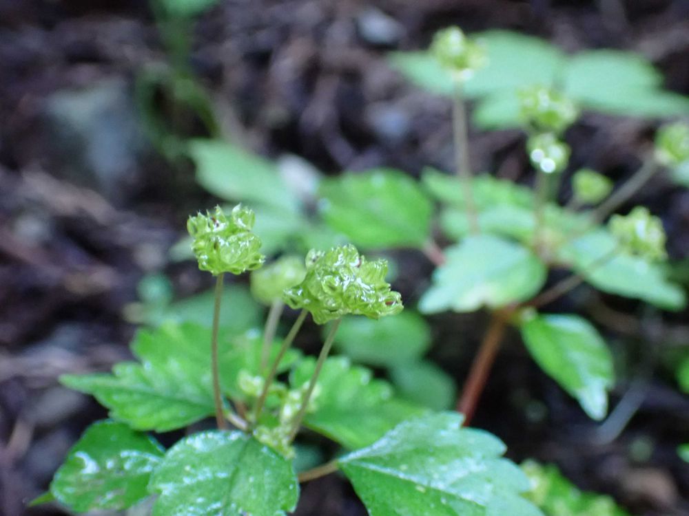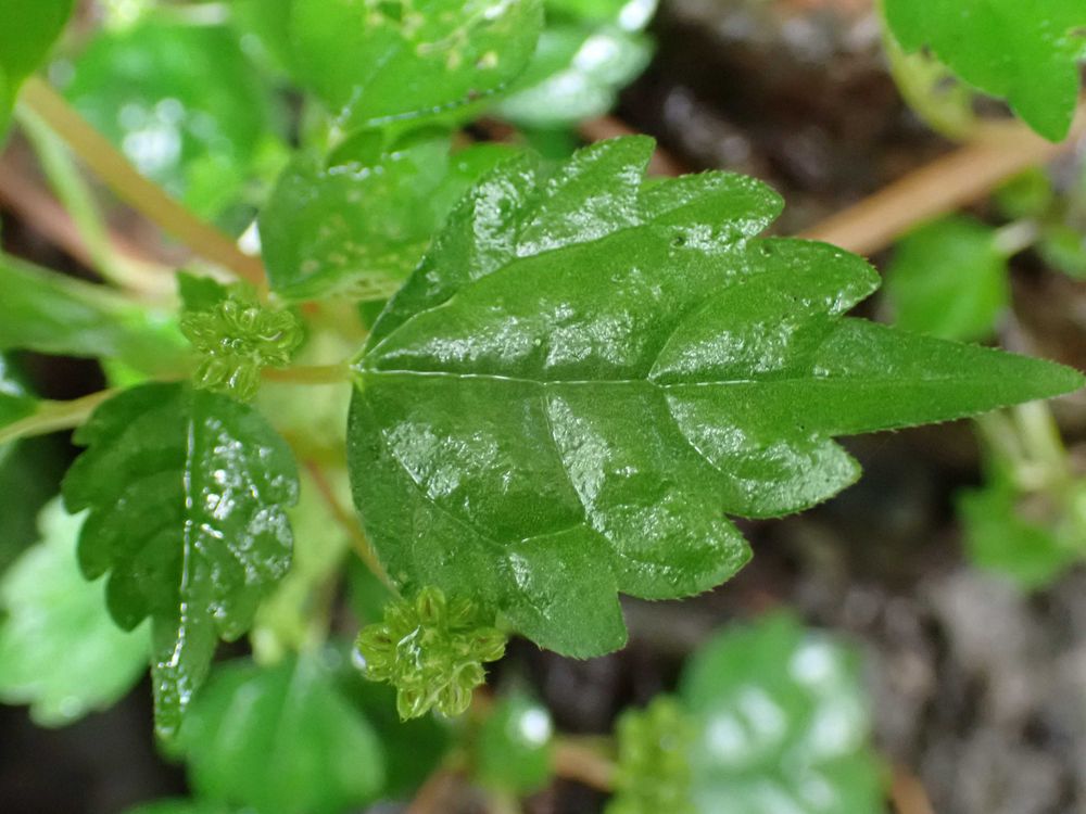 高さ、10センチくらい。花の柄を上に伸ばし、雌花雄花、かたまって、咲いていました。が、もう実になっていて、花は見ることができませんでした。(①③)