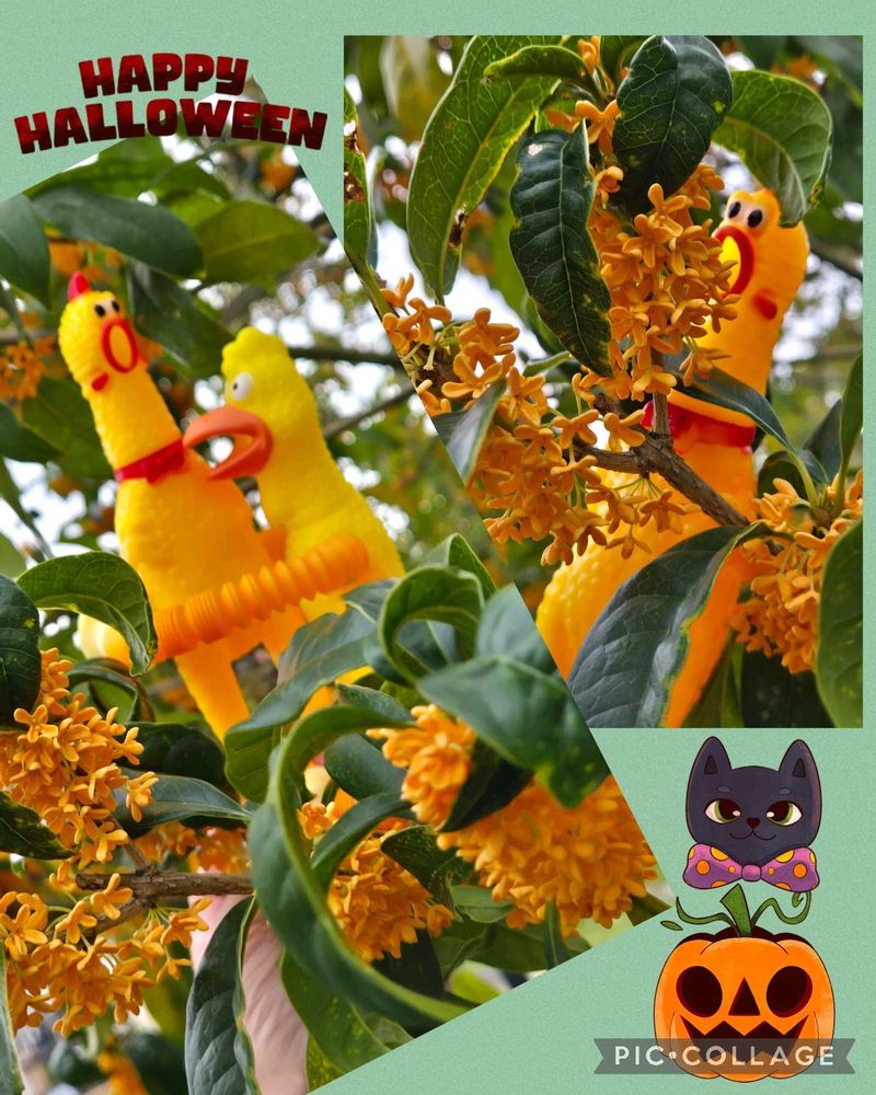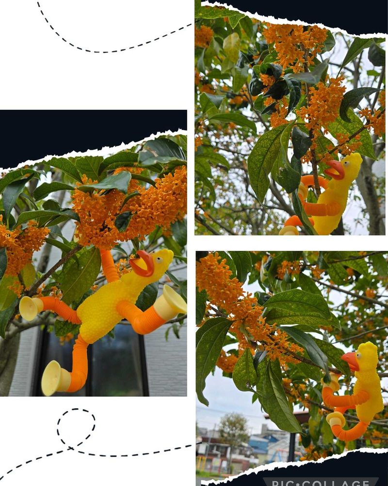 マロママさんから頂いたチキンちゃんは手足がビヨ〰️ンと伸びる〰️🤣チキンちゃんに『キンモクセイ美味しかった😋』と聞いてます🤭