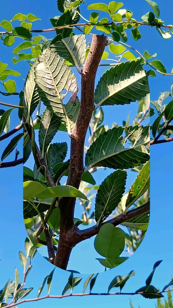 ①☝️アキニレ?🤔落葉🍂後の枝は魚の骨🩻?みたいだったょ〰🤭鋸歯のある葉っぱ👀 強そぅ📣🎶