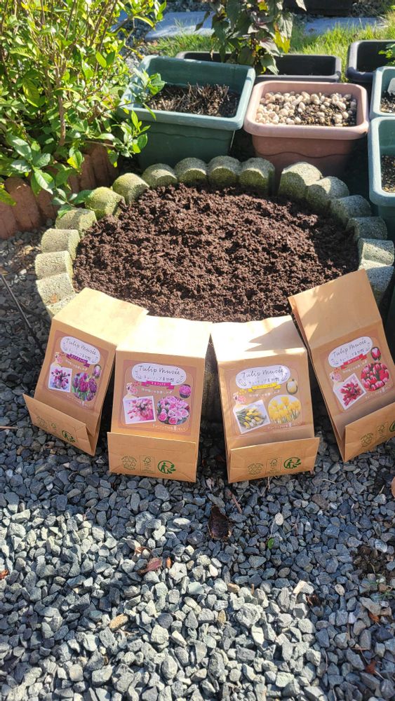 タキイさん✨🎁✨の🌷チューリップ球根8×4植え込みしました。どの色のどの子がどう咲くのか...((o(^∇^)o))ワクワク楽しみが止まりません
