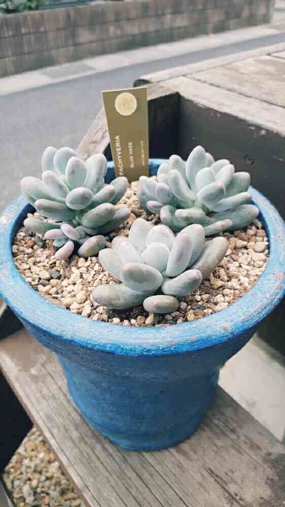 アジアン雑貨のお店でゲットしたブルーの鉢にブルーヘイズを植えました♪