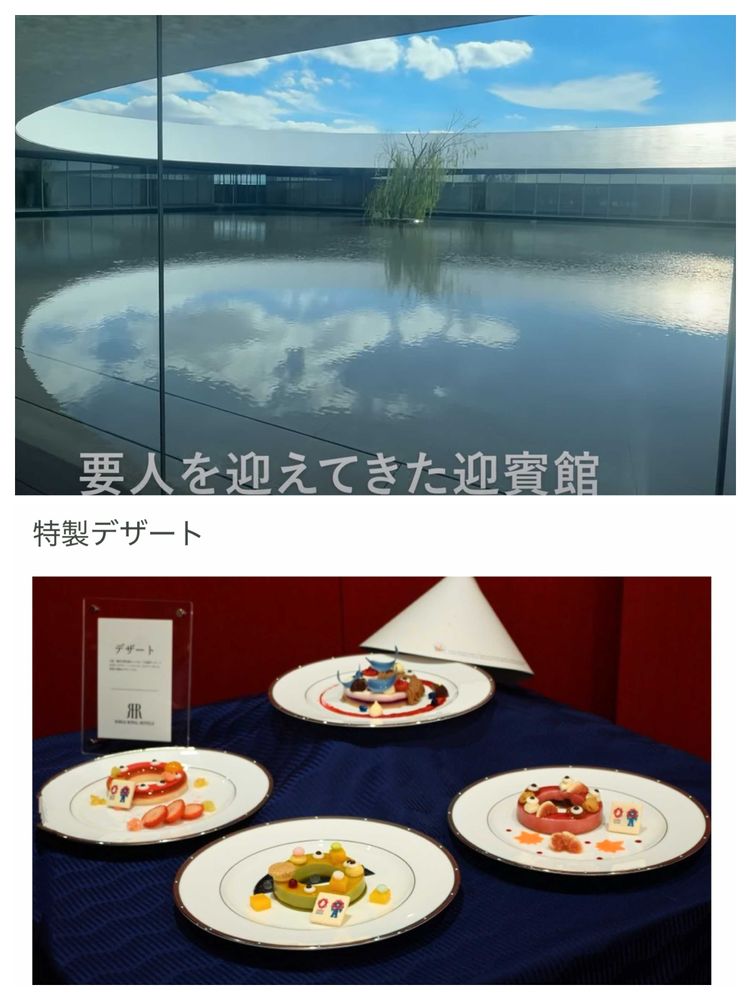 最後の番外編のpicは大阪万博の迎賓館は第二の大屋根リングと呼ばれていたもので閉幕してから一般公開されたもの。そしてミャクミャクくんと大屋根リングをイメージした おもてなしのスィーツだそうです🎂