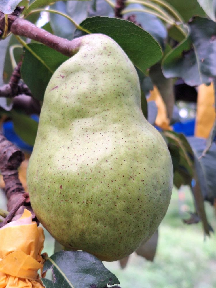 ル・レクチエのあとに「新興」と言う奥梨を収穫したけどこれが気持ちよく太っていて、私の小さな手(体のわりに手特に指が短い😅)では片手では持てないくらいよ😅