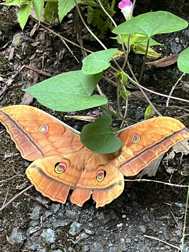 目玉模様のヤママユガ、晴れ葉のような保護色、飲まず食わずで次の世代に命を繋ぐのですね🙂