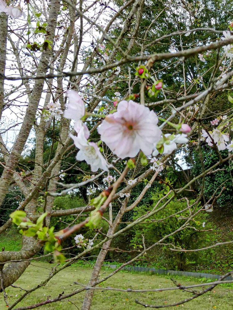 寒々とした秋空に映えて咲いていた秋の桜🌸十月桜🌸