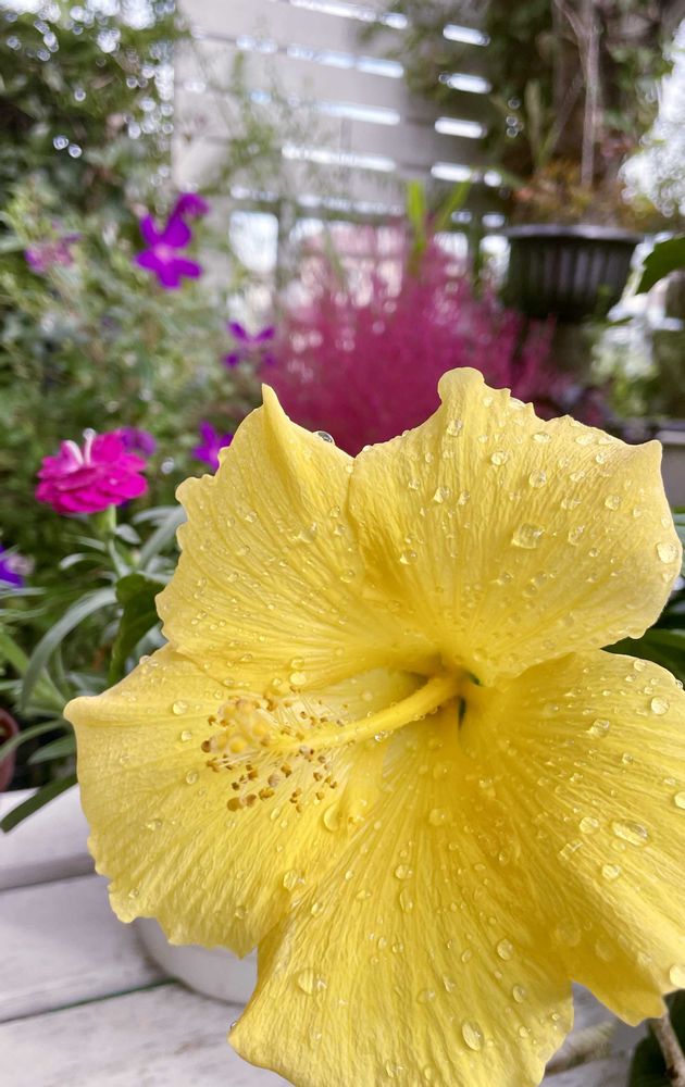 久しぶりのお日さまに、ハイビスカスイエロー💛さんもウキウキのお顔に😆❤️