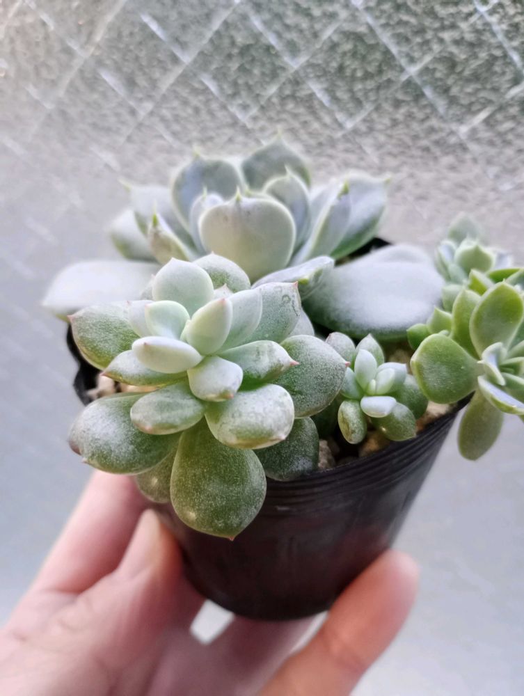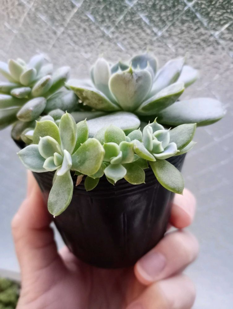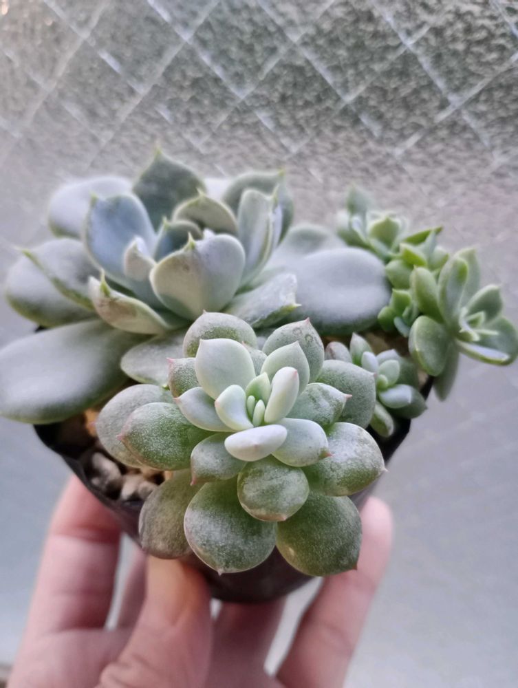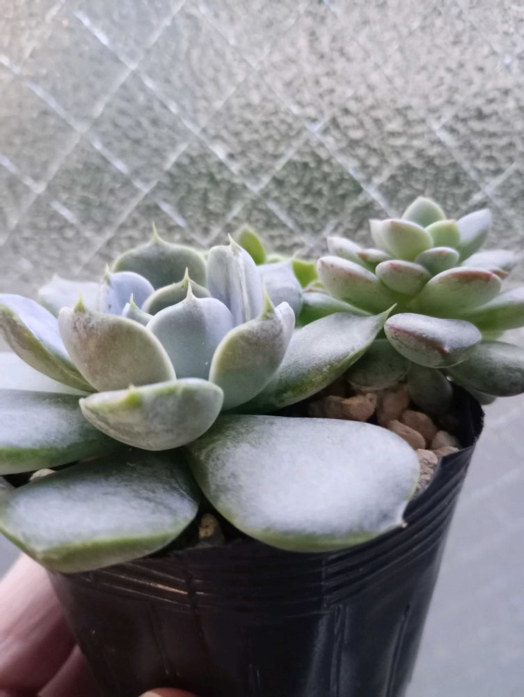 子株はもっと白く見えますね〜!右は中心辺りが親株に似てる気がするけど左は色白の黄緑色に見えますね〜☘️