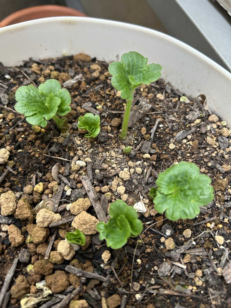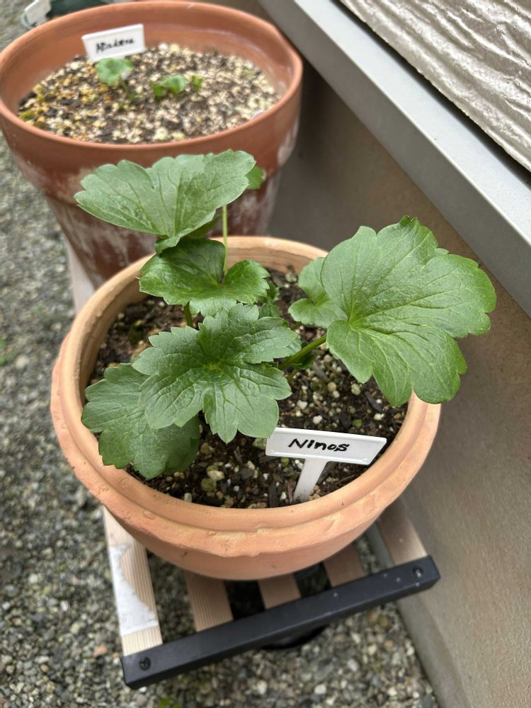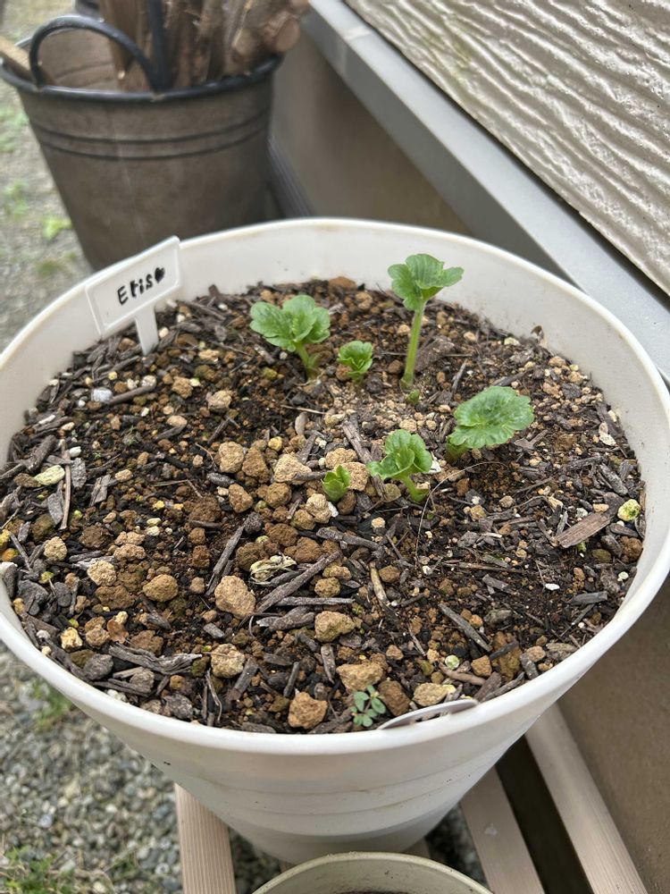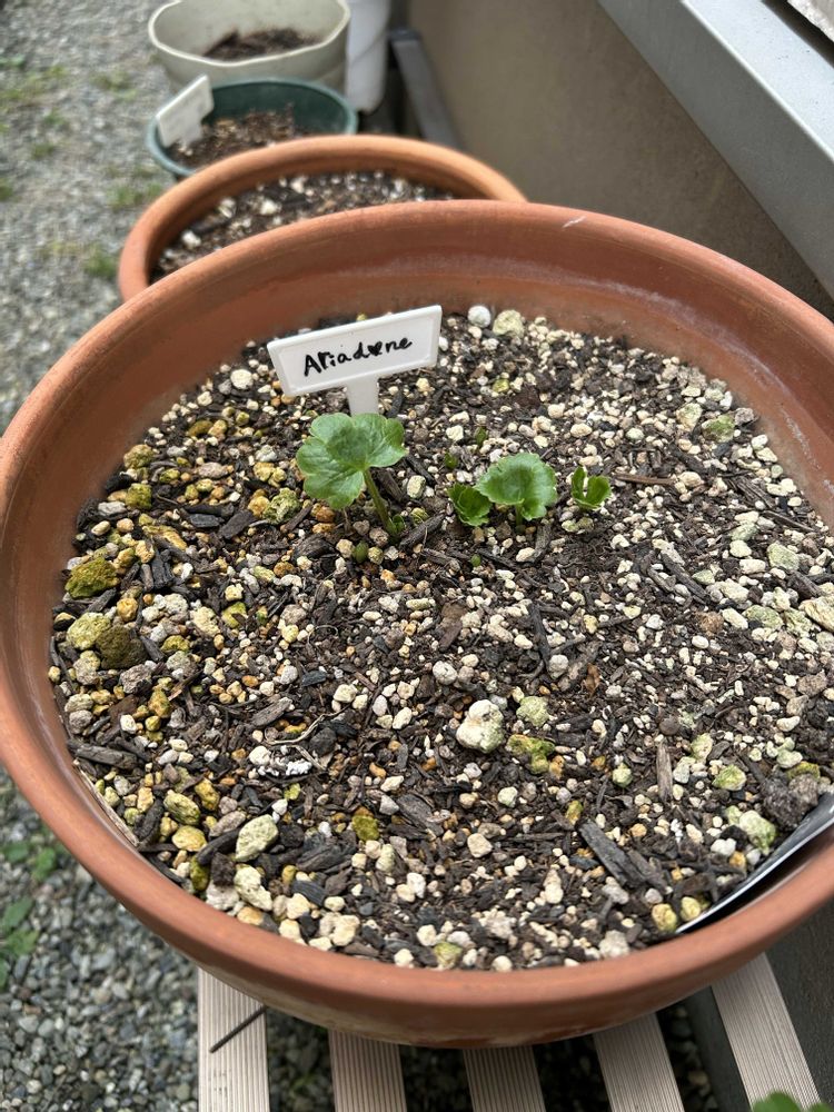 庭では無いところで、待機させていたラナンキュラス・ラックスの鉢が、芽を出し始めました♪