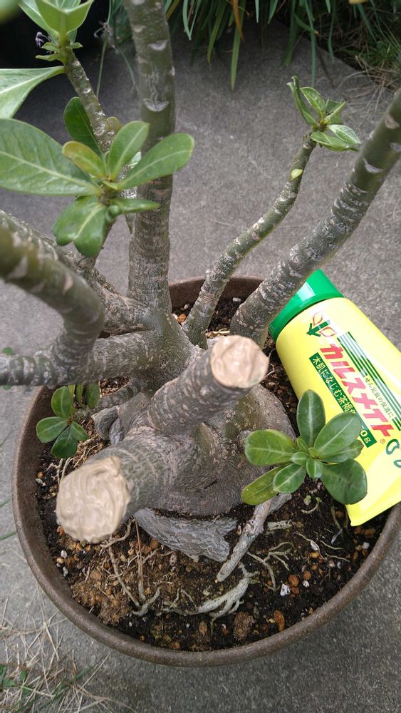 アデニウムも大きくなりすぎて時期は今じゃないでしょうがリビング窓辺に収まるように初めて切ってみました✂️