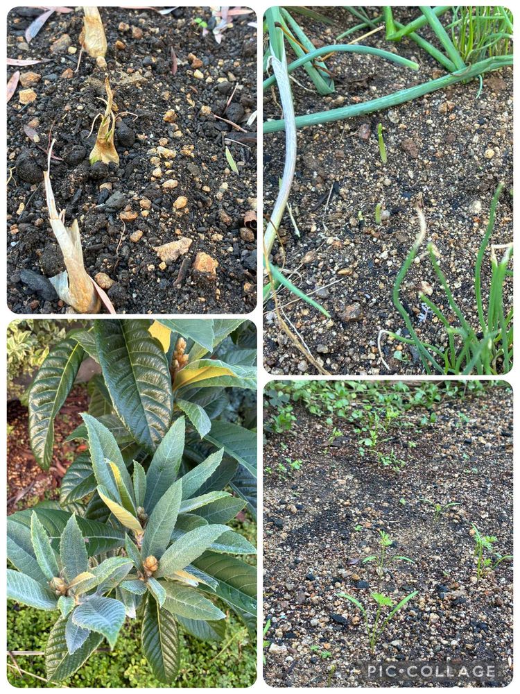 ⑤↖︎10/中旬頃植えたラッキョウ30個 うっすら芽が出てきた