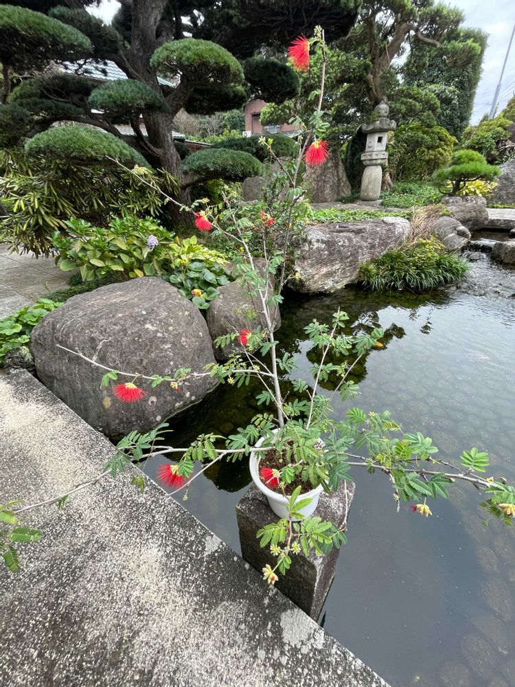 蕾からピンとした扇のように赤色のお花、可愛いなと眺めちゃいます☺️