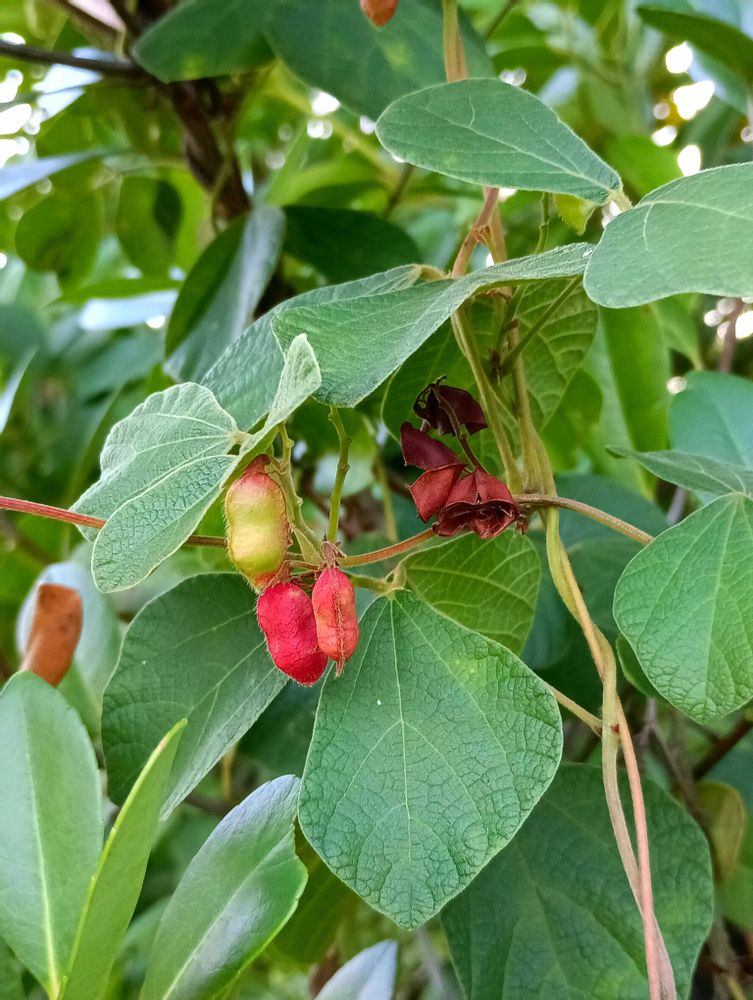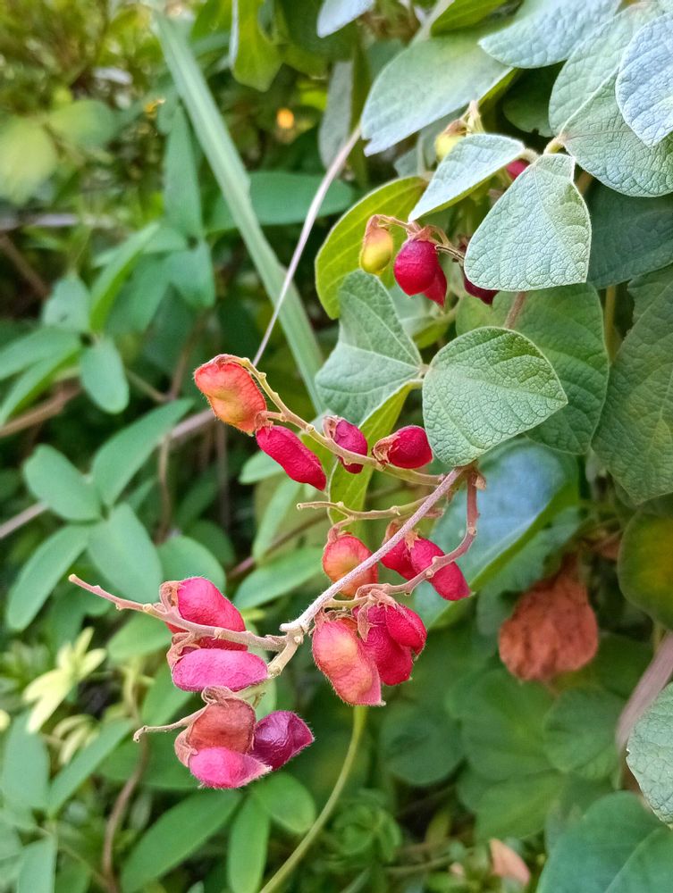 サヤが、パカッと割れたら、2つの黒光りする種子がのぞいて、まるで、何かの顔のようで😄、こちらを見ているような表情に見えますね😆