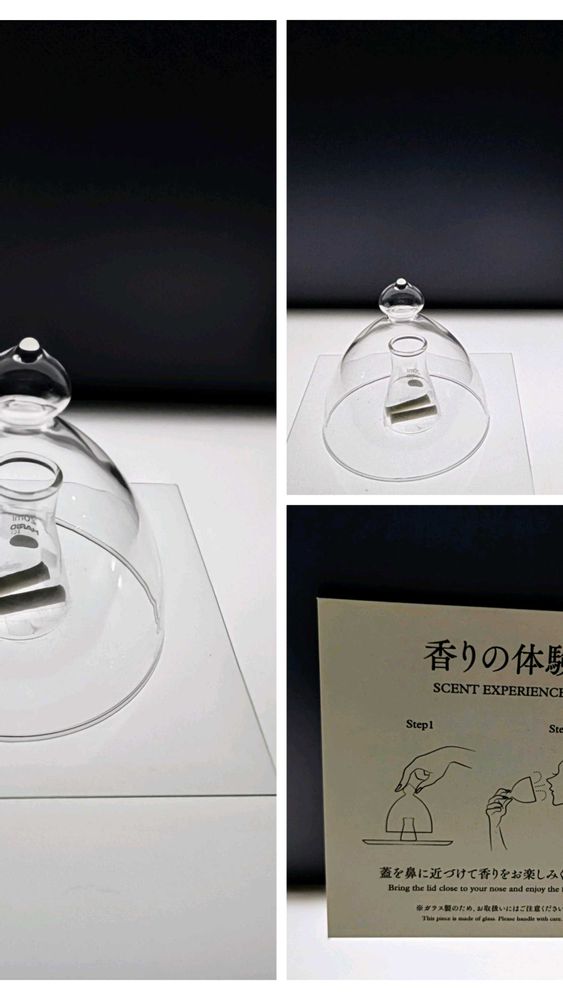 ②の様なガラスのカップ∩に香りを閉じ込めて、蓋を取り鼻👃に寄せる。