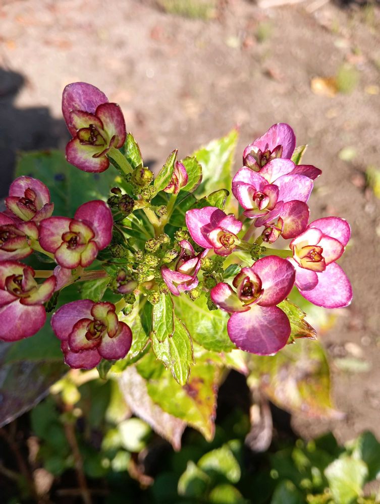 songさんの季節はずれの紫陽花,桔梗。露地栽培,ざるぎく露地栽培の投稿画像