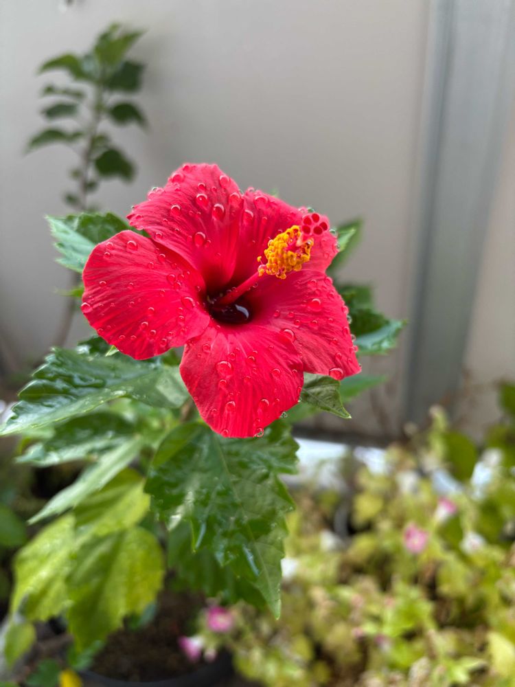 おはようございます☀今年最後の一輪です🌺今年は、ポツポツと咲いてくれました。咲いてくれた朝は鮮やかな紅色が元気をくれました💪感謝💕