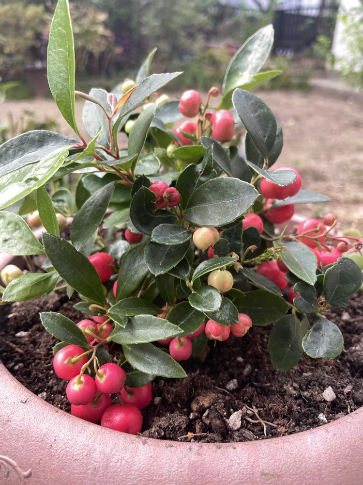 赤い実と白い実がついたチェッカーベリーこの時期可愛いですね♥️🤍