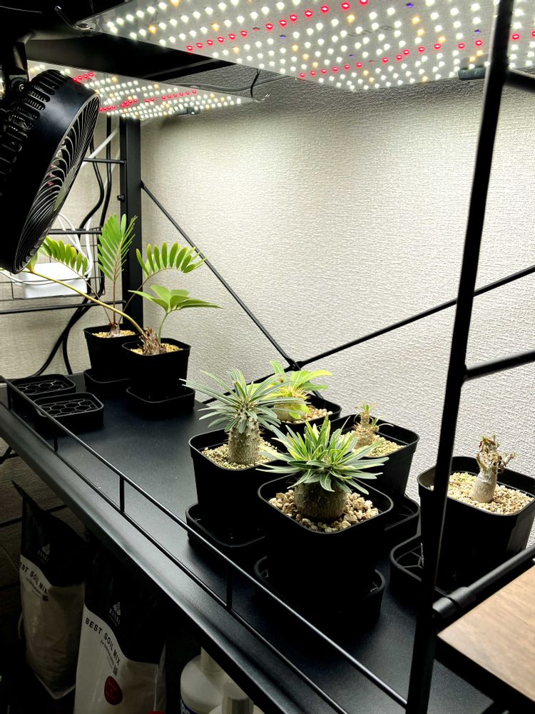 今朝の最低気温が12℃まで下がったので、グラキリス4兄弟とエニグマチカムのおチビ塊根軍団、ザミアフルフラセア、ザミアフロリダーナを室内に🪴