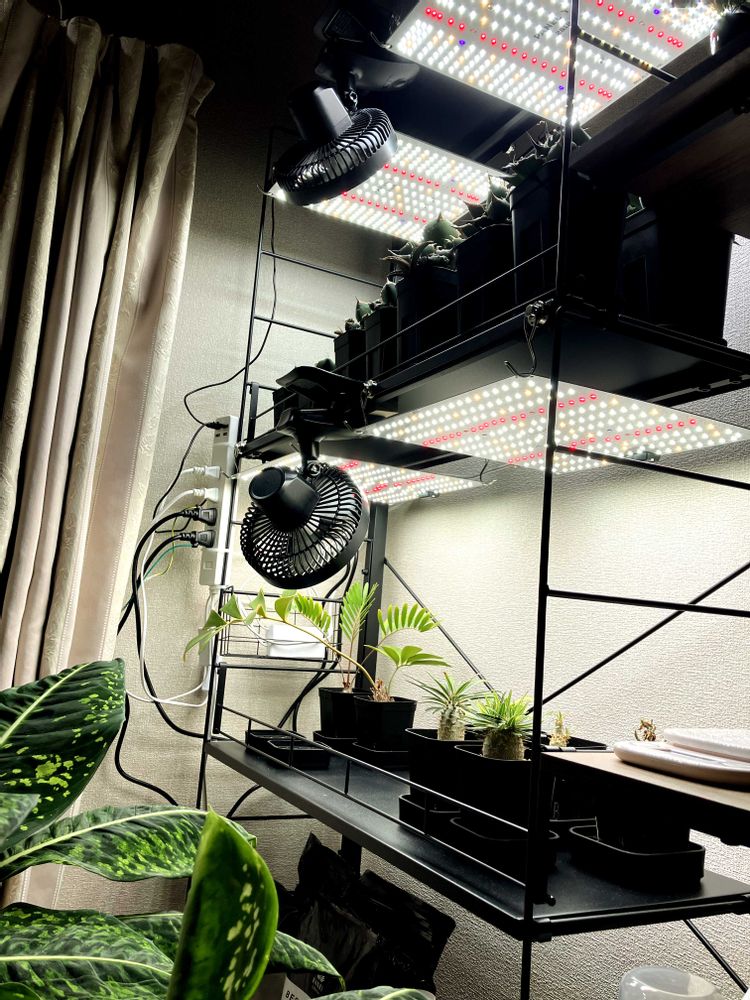 昨夜、夜なべしてレールライトとサーキュレーターを窓際に設置して環境整備完了でーす👍😁