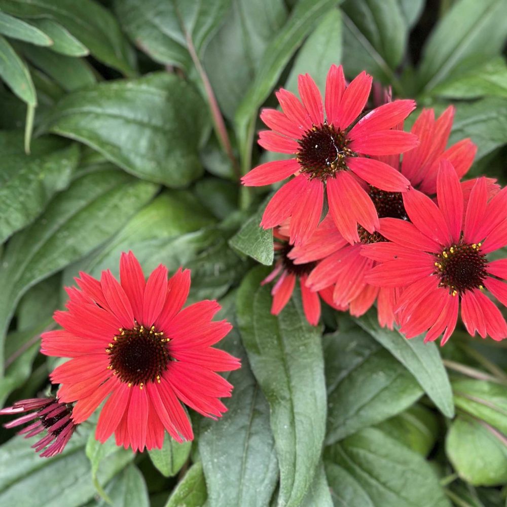 秋になって咲き進んだマリーゴールド。この赤がたまりません。夏にまったく咲かなかったエキナセア、先日一輪咲き、さらに先進みました。