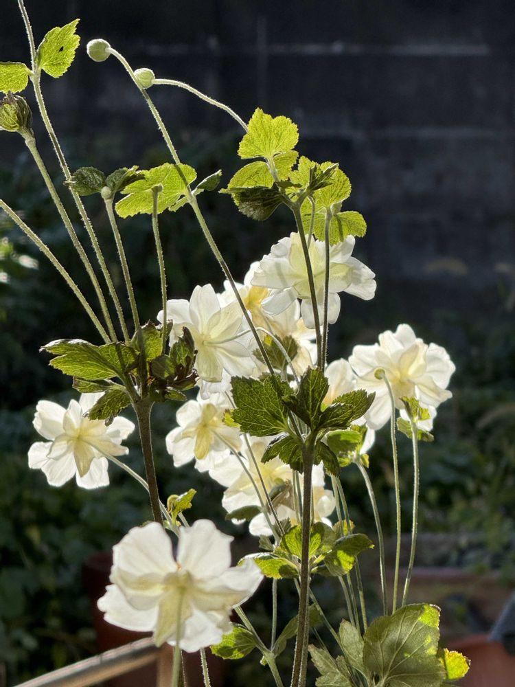 白いシュウメイギクは朝日に透ける感じの後ろ姿も素敵です🤍✨