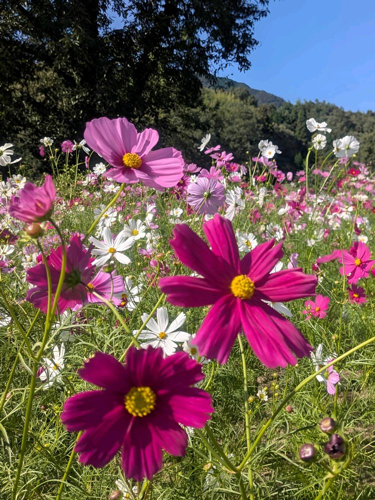 1️⃣2️⃣3️⃣ 昨日は雲1つない快晴でした。 今日を逃してはならぬとコスモス見に行ってきました。何処を撮るか しばらく あちこち 眺めてました👀
