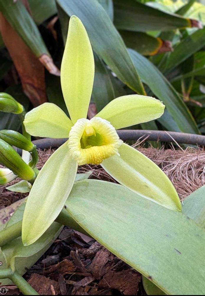 お花が受粉してもバニラビーンズ🫘になるまで9ヶ月、更に熟成するまで4ヶ月かかるそうです!