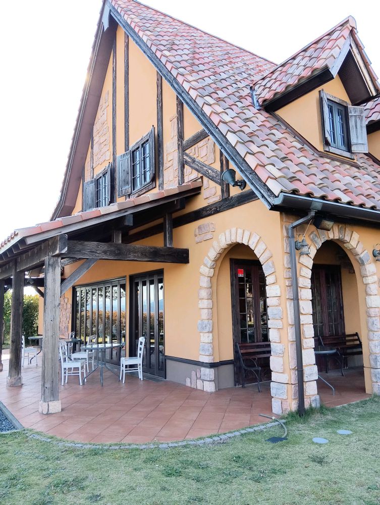 高台に有るカセボクジョウで🛵一休み、モンブランと珈琲🎶モチロン牛乳🥛も😎