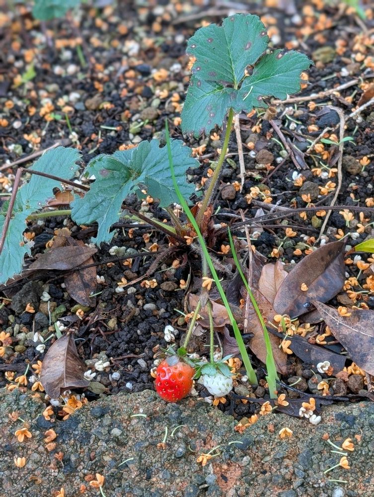 勝手に増えた地植え苺🍓に実がついてました🎶🎶🤤