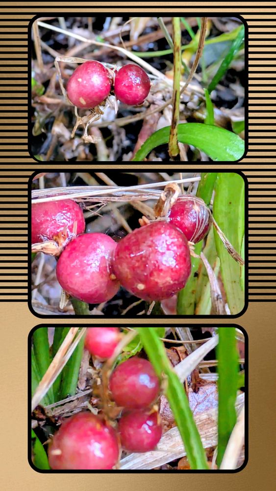 北海道のGS友が吉祥草の花の投稿をしてたのでうちはどうかなって見に行ったら蕾は全く無くて、なんと今まで気が付かなかった場所に吉祥草の実がいくつもあってびっくり((((;゚Д゚))))