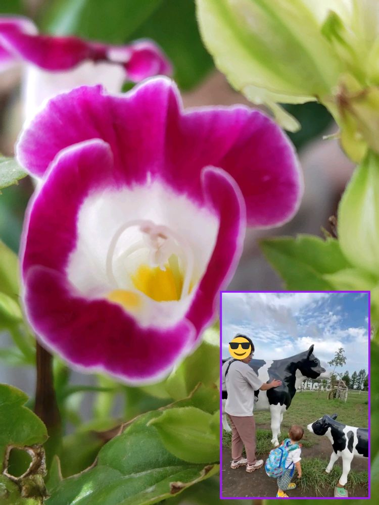 孫っち、音更の道の駅の牛🐮さんナデナデ