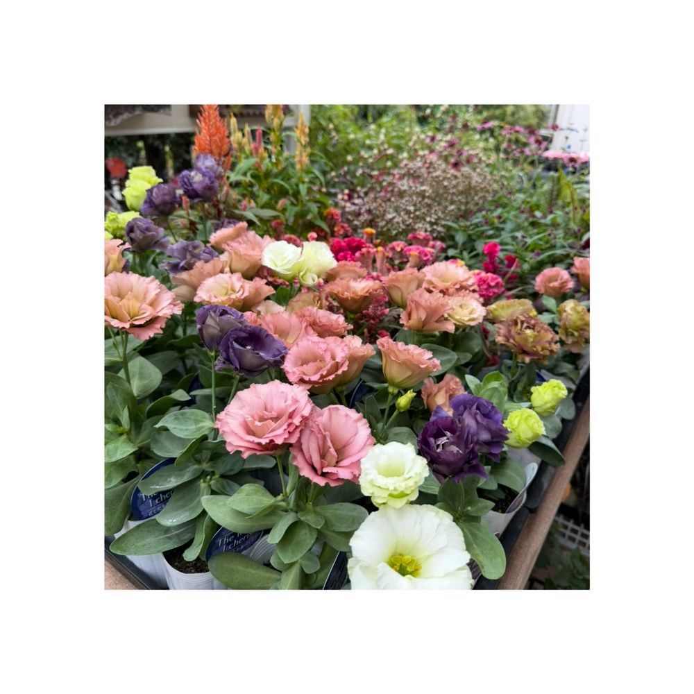 oharuさんの中央辺りのクリーム色の薔薇みたいなお花は❓トルコキキョウかな🧐