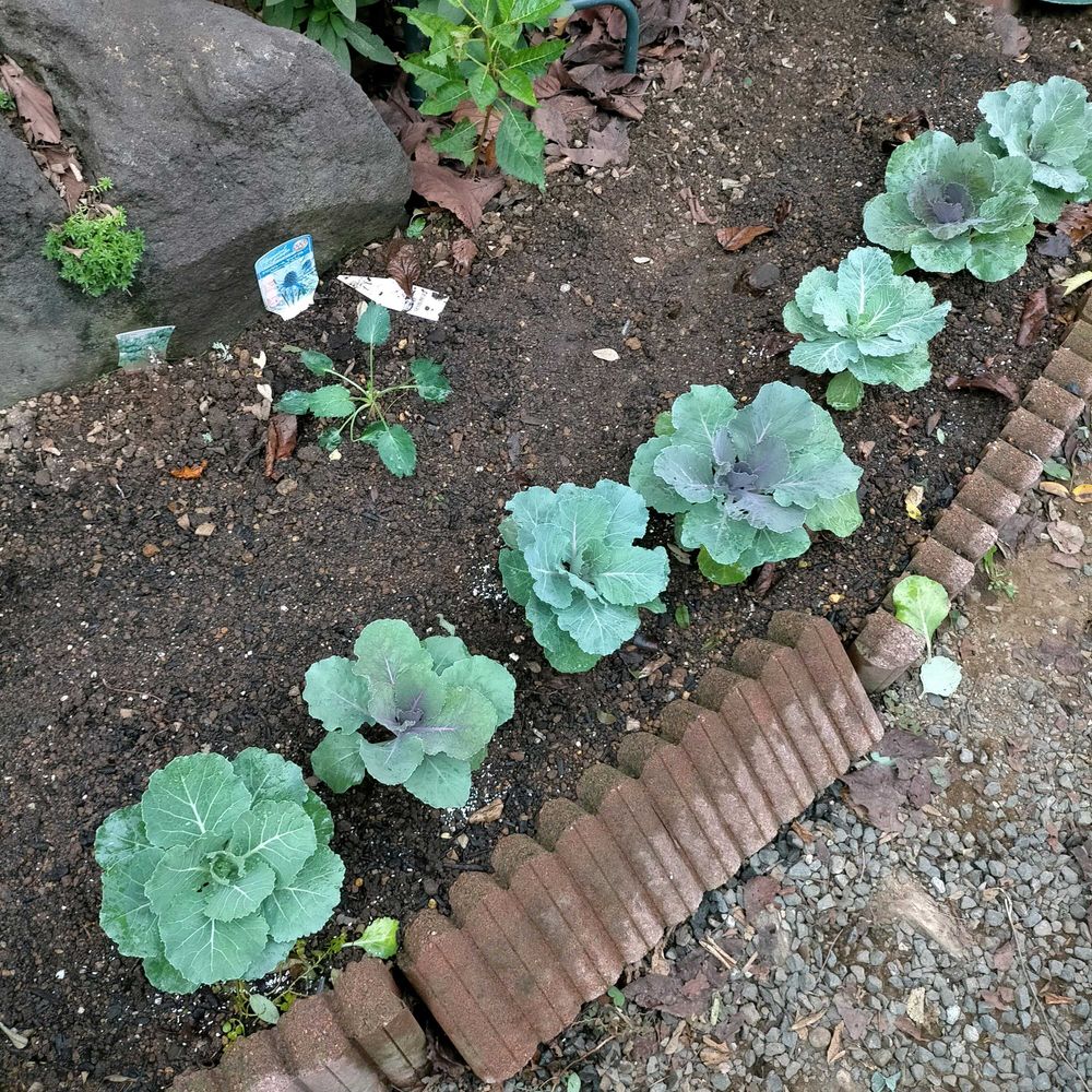 【5枚目】矮性の葉牡丹つぐみミックスは大きく育てたくて地植えにしてみましたが、寒くなってきたからか成長が鈍くなってきたようで、ちょっと遅かったかな?💦