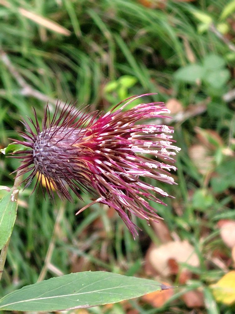 総苞は径3cmで球状鐘形で総苞は硬く、13〜15裂あり尖っている。