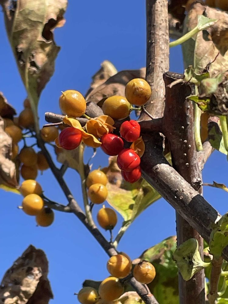 赤と黄色の果実が青空に似合っていました♪