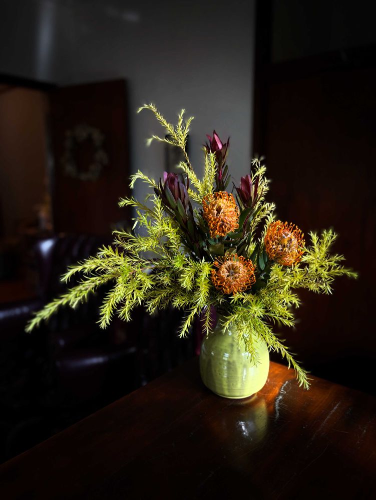 akanepotteryさんのリューカデンドロン サファリサンセット,メラレウカ レボリューションゴールド,ピンクッション・ソレイユの投稿画像