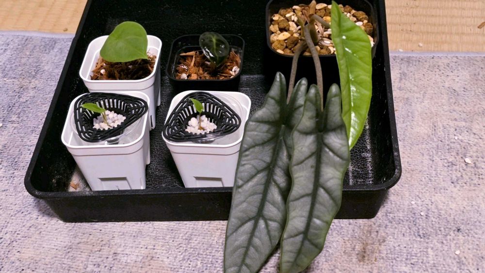 2025.8月に某サイトで購入した【アロカシア チャイ】の 突然変異?なんだろう 購入時、元々有った葉を(1枚目の葉)として、 下から新たな葉が出てきてる状態で到着しました(2枚目の葉) こちらに来て初めて出てきた葉に異変が。。 育て始めて出てきた初めての3枚目、4枚目 (途中から、斑1、斑2、、と続きます) どこまでこの謎の斑入葉が続くのか、 いや止まるのか……記録していきます