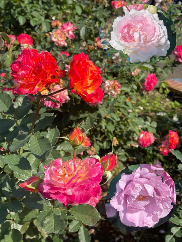農林公園で、昨年までは、この花壇はパンビオの花がありましたが、今年は、薔薇の🌹花壇に変わっていました。四季咲きの、薔薇が満開です。