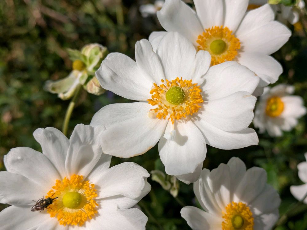 白い秋明菊も輝いてますね✨