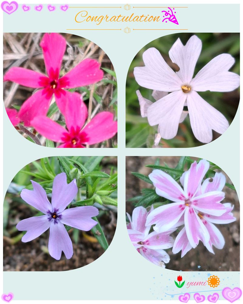 花壇で咲いている芝桜で❤🩷💜🤍お祝いさせてください