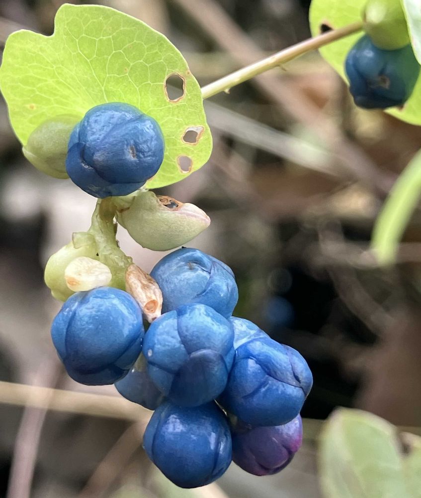あまり出かけない公園、刈り取られた草の中にかろうじて残った実を発見💙