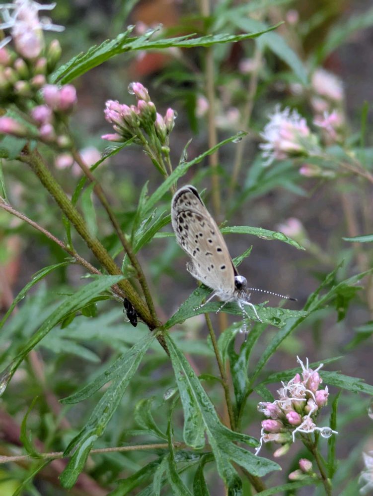 フジバカマには、雨だけどシジミチョウが、止まっていました。