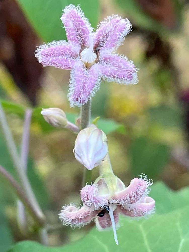 犬の散歩道で咲いてました今迄同じ市でも街中に住んで居たので発見がいっぱいです先日ワンコと歩いて3秒後に獣道からイノシシ🐗大中小3匹が走って出て来て走りさりました