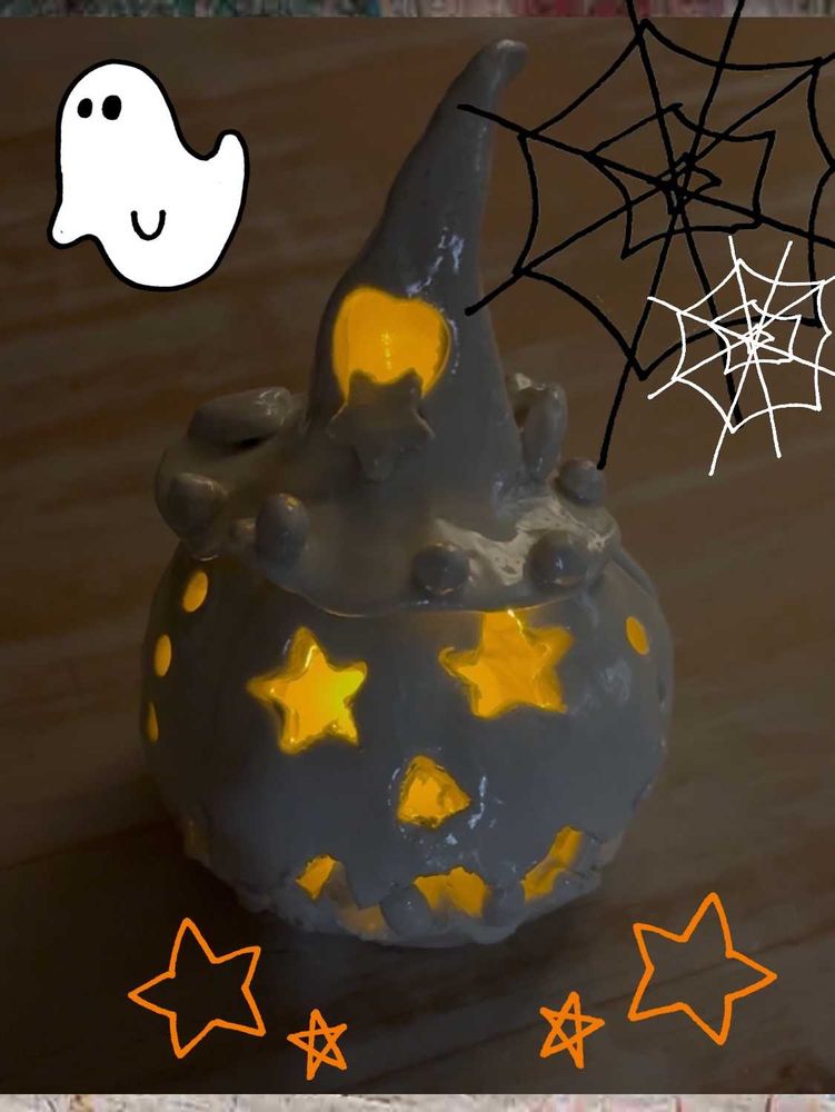 ランプは100均の小ちゃい電池でつける炎の🔥形のランプを入れてるよ。
