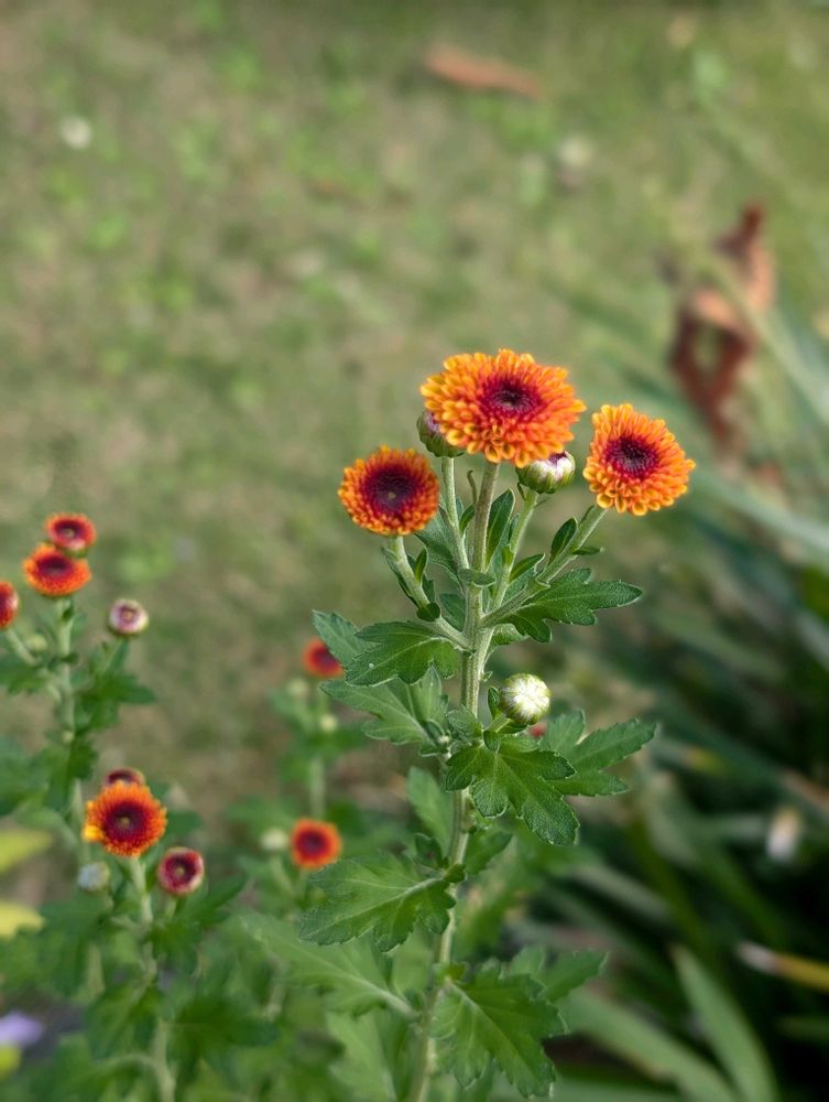 ①公園の夕日にあたるシュウメイギク②白花シュウメイギク③④庭のシュウメイギク⑤小さな菊が咲き始めました(庭)