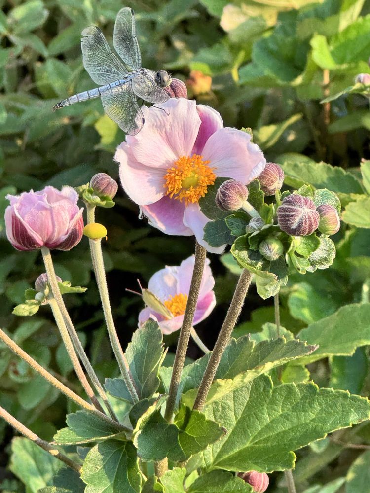 シオカラトンボも素敵な花に魅せられたのか、なかなかそばを離れませんでした